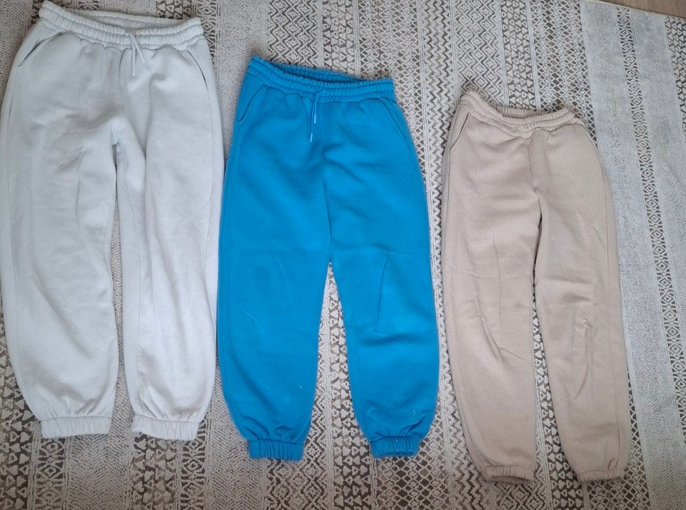 3 adet bej mavi beyaz renk rahat kesim kadın eşofman altı, yumuşak ve sıcak dokusuyla sportif ve günlük kullanıma uygundur. L bedenede uyumlu