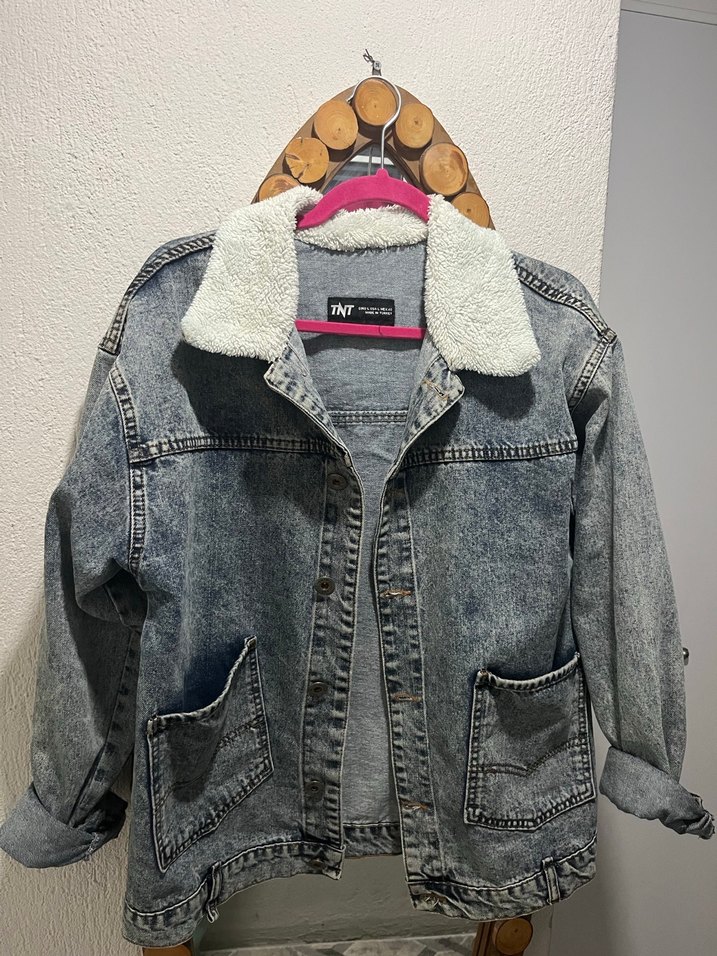 Gri renk, tüylü yakalı, rahat kesim midi uzunlukta kadın denim ceket. Notlu yaka ve askılı kollu, desen içermeyen sokak stili. 40 beden yakasında hafif mavilik var fiyata yansıtıldı başka sorunu yoktur marka temsili