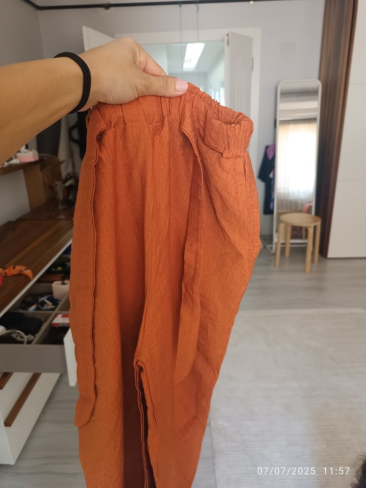 , rahat kesim, midi boy kahverengi pantolon. Parlak kumaşlı, günlük rahat kullanıma uygun. s beden hiç gıyılmedi