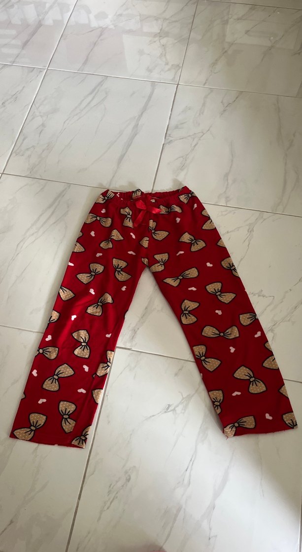 Rahat kesim, renkli fiyonk desenli kırmızı kadın pijama altı. i tasarımıyla trend ve rahat bir görünüme sahip.