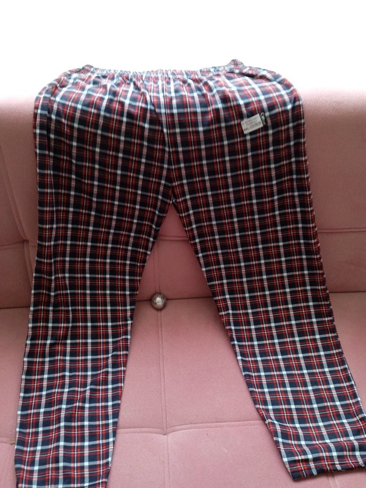 Rahat kesim ve pileli detaylara sahip, kırmızı ekose desenli erkek pijama altı, rahat ve şık sokak stili için uygundur.