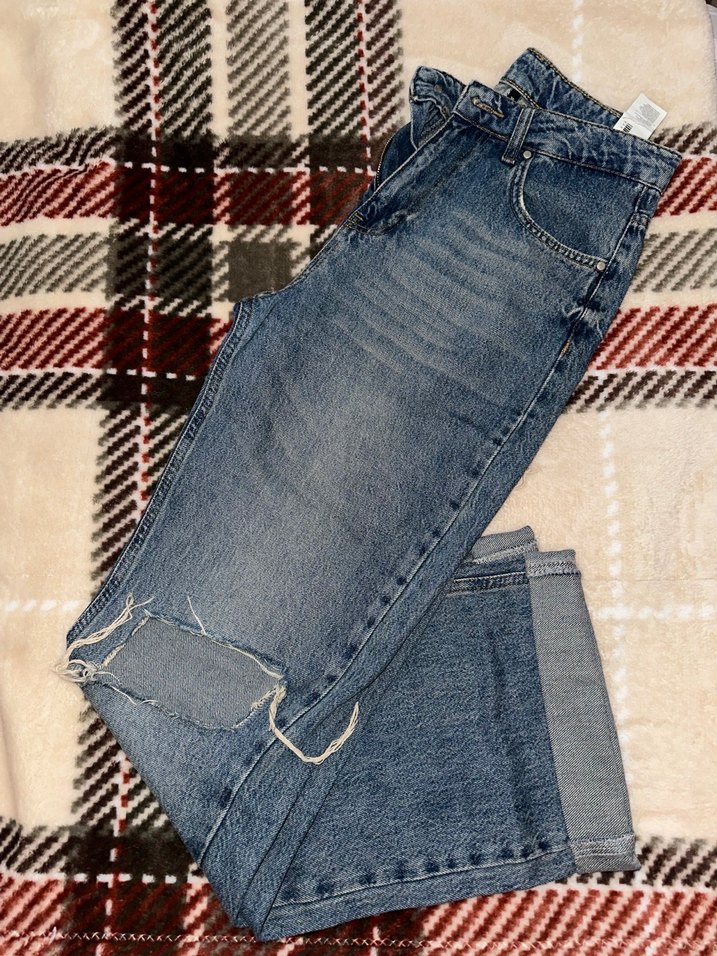 Rahat kesim mavi kot pantolon. Günlük kullanım için uygun, sokak tarzına uyumlu ve konforlu.