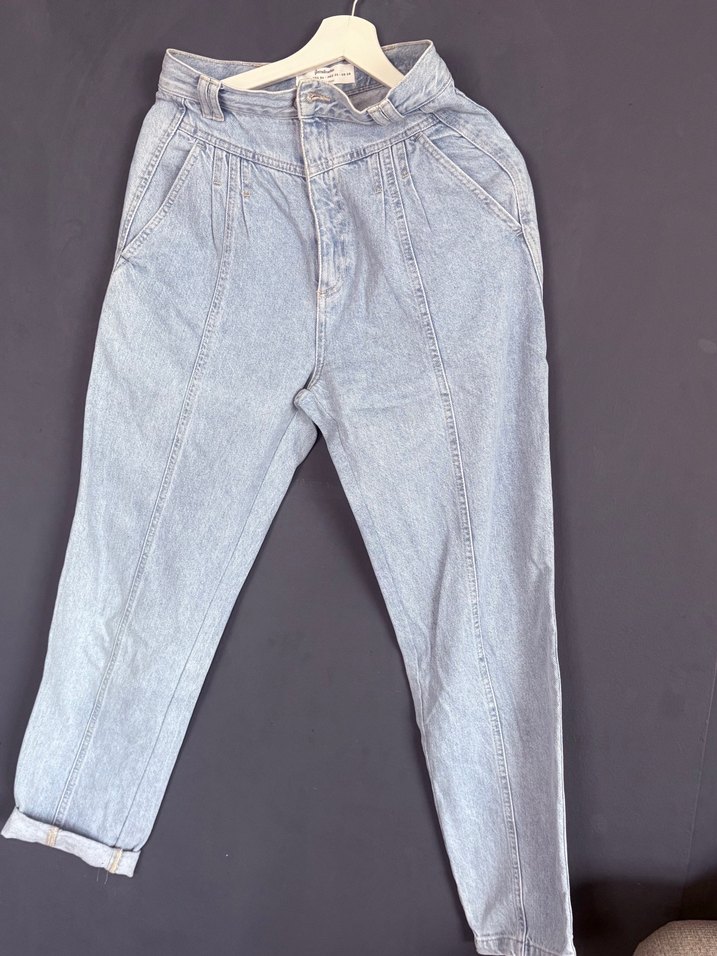 Yumuşak denim kumaştan, rahat kesim midi uzunlukta jean pantolon. Günlük kullanım için pastel bej renkte, rahat ve şık bir stil sunar.