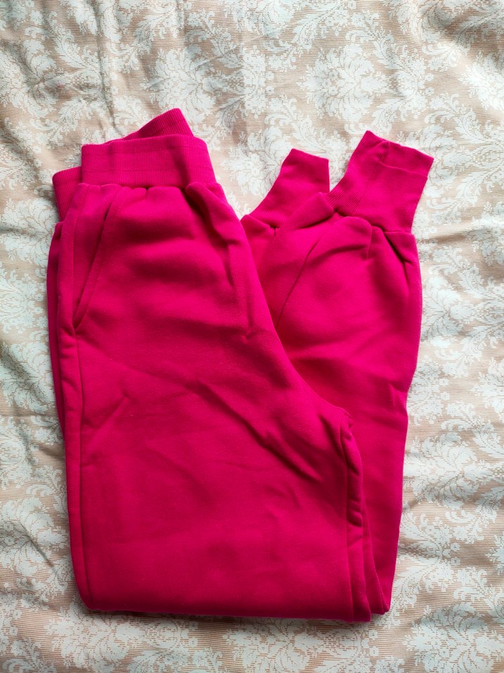 Yumuşak ve rahat kumaştan, fermuarlı cepli, rahat kesim pembe kadın eşofman altı. Günlük sokak tarzına uygun. Ürün hiç kullanılmamıştır. Paçaları lastikli ve cepleri vardır. Ürün boyu 93 cm dir. Marka temsilidir.