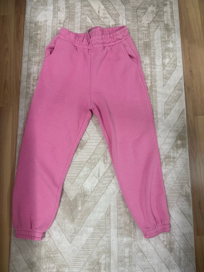 Rahat kesime sahip, pastel pembe renkli kadın eşofman altı, yumuşak kumaş ve zahmetsiz şıklık sunar, spor ve gündelik sokak stiline uygundur.