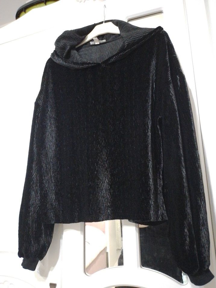 Kapsonlu uzun kollu, rahat kesim siyah kadın bluz. tasarıma sahip, günlük kullanıma uygun goth tarzında.kapsonlu #koton marka