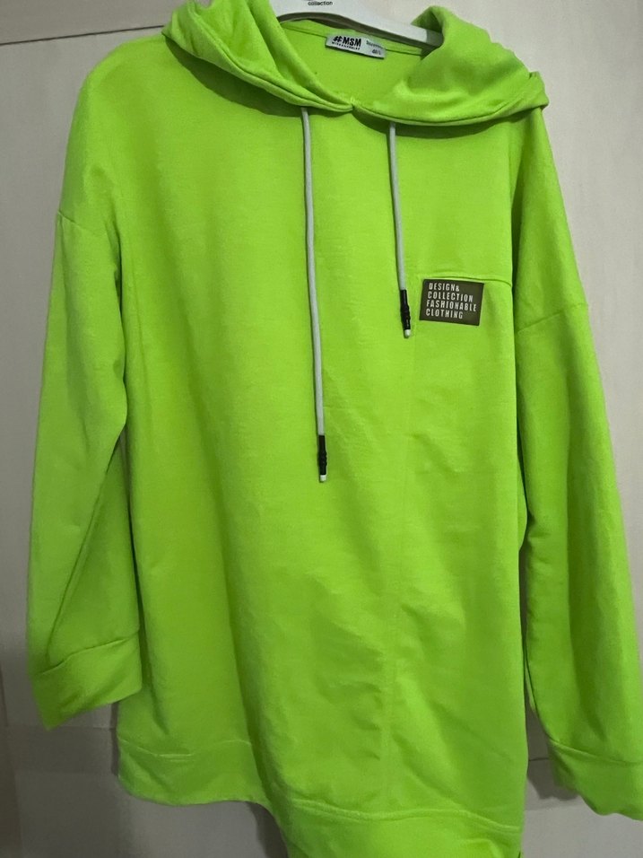 Yeşil renkli kapüşonlu sweatshirt, rahat kesim ve uzun kollu. Göğüs kısmında baskılı detay bulunur. Yumuşak ve sıcak kumaştan üretilmiştir, günlük kullanım için uygundur.