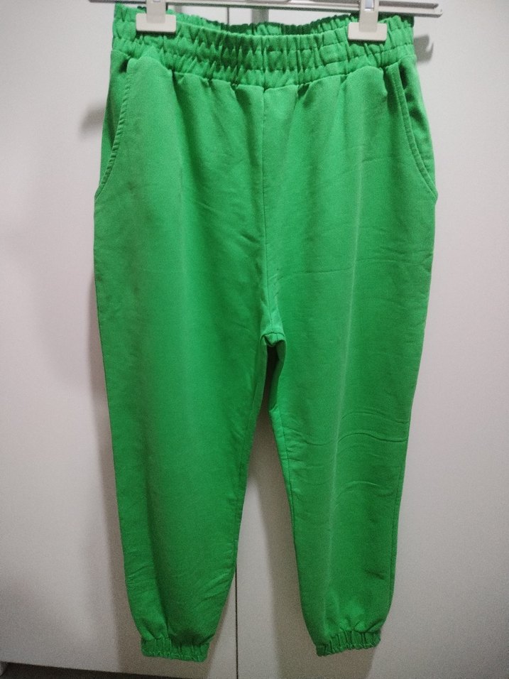 Rahat kesim, lastikli bel ve bilek uçlarına sahip, yumuşak ve sıcak kumaştan yeşil eşofman altı. Spor ve rahat sokak stili için ideal.