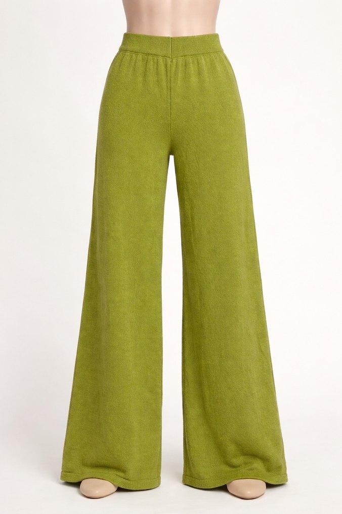 Rahat kesim, yeşil Triko pantolon. Uzun boy, konforlu ve zahmetsiz şıklık sunar. Günlük kullanıma uygun, bohem ve retro tarzı yansıtır. Etiketi mevcut değil, üretim fazlası sıfır üründür