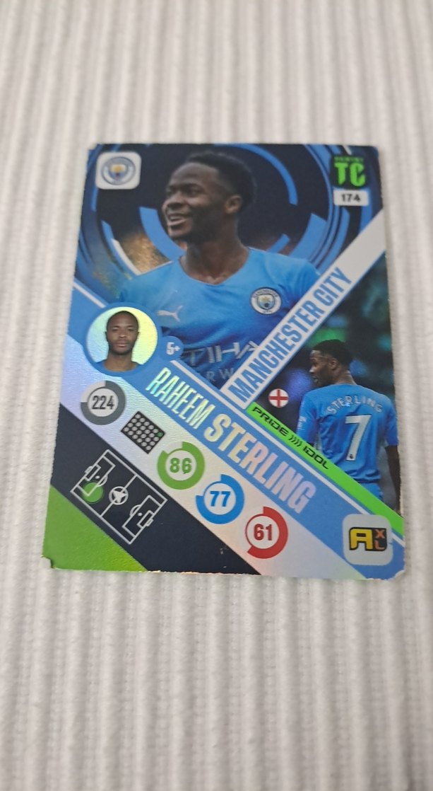 Bu rozet, mavi Manchester City formasıyla Raheem Sterling'i ve istatistiklerini içerir. Pop kültür sokak stili tasarımıyla trend belirleyicilere uygundur. ⚽