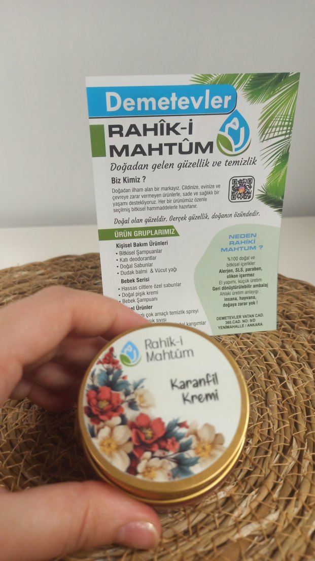 Rahik-i Mahtüm karanfil kremi, doğadan gelen güzellik ve temizlik sağlar, özenle seçilmiş içeriklerle hazırlanmıştır.