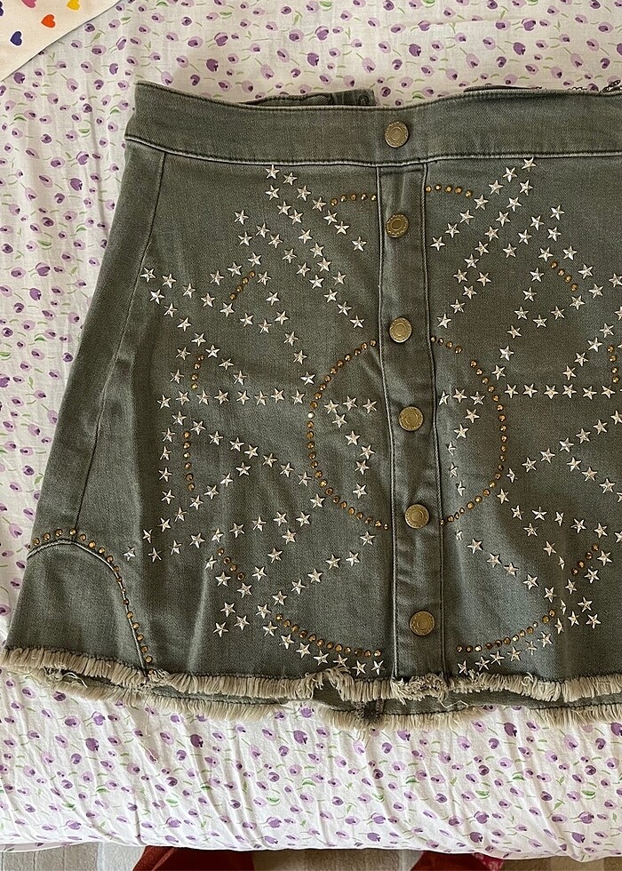 Eski sezon. Bir partide giyildi o kadar. Bel bölümünde hafif bir sökülme var ama tadilatla giderilecek bir şey ve iç tarafta kaldığı için dışarıdan belli olmuyor. Arzu eden böyle de giyebilir
