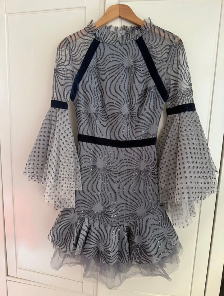 Raissa Vanessa Fırfırlı Gri Mini Bohem Parti Elbisesi