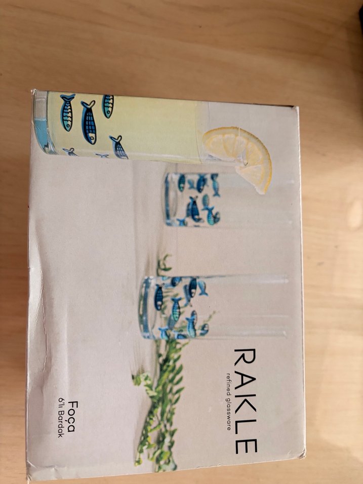 Rakle Foca 6'lı bardak seti, mavi balık desenleriyle pastel renkte tasarlanmıştır. Günlük kullanım için uygun yumuşak ve renkli bir görünüme sahiptir.