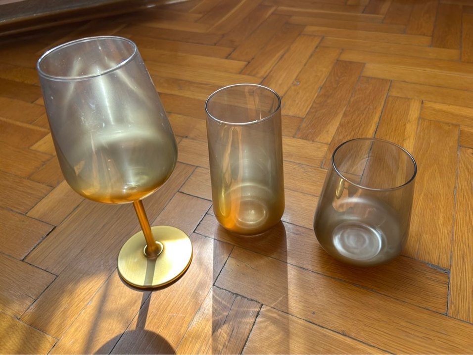 DİKKAT ‼️ BU İLAN 18 ADET BARDAK TAKIMI Sıfır ürün kutusunda.Parlak altın renginde, füme geçişli uzun saplı ve hafif tonlu su bardağı . Zarif tasarımıyla içecek sunumu için uygundur.