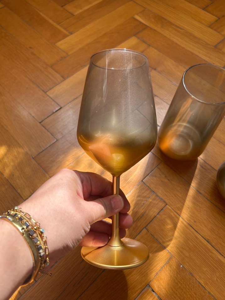 DİKKAT ‼️ BU İLAN 6 ADET BARDAK Sıfır ürün kutusunda.Parlak altın renginde, füme geçişli uzun saplı ve hafif tonlu kadeh. Zarif tasarımıyla içecek sunumu için uygundur.