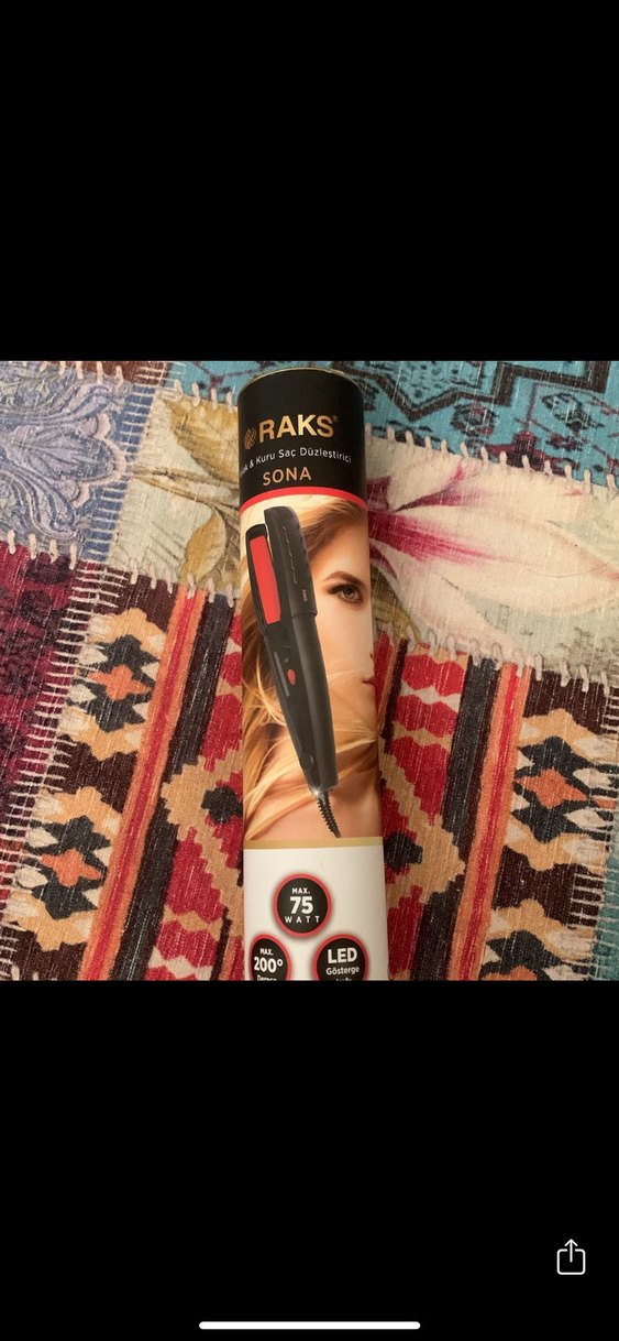 RAKS Sona siyah saç düzleştirici, LED kontrol ve 75 watt maksimum güçle 200°C'ye kadar ısınır. Saçlarınızı kolayca şekillendirir. Çok az kullanıldı