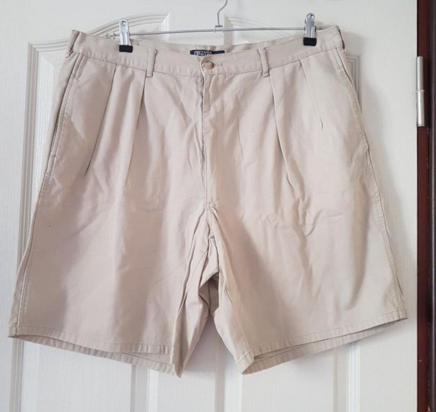 Bej renkli, bol kesim ve pileli erkek mini şort. Yumuşak pamuk kumaştan üretilmiş, günlük kullanım için uygun rahat bir model.