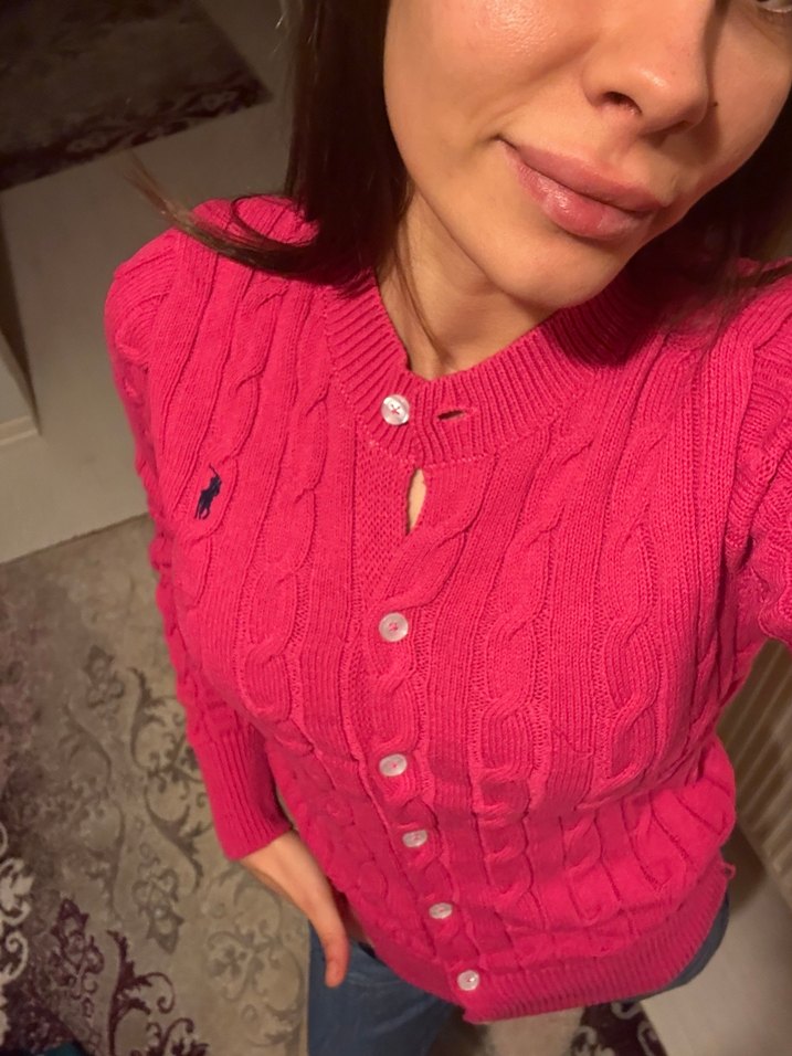 Ralp Lauren Düğmeli Pembe Triko Kadın Hırka