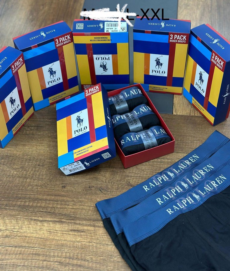 Ralph Lauren 3'lü paket, baskılı ve kısa boy erkek boxer seti, atletik tarza uygun, XXL beden. Bel kısmında Ralph Lauren logosu bulunur.