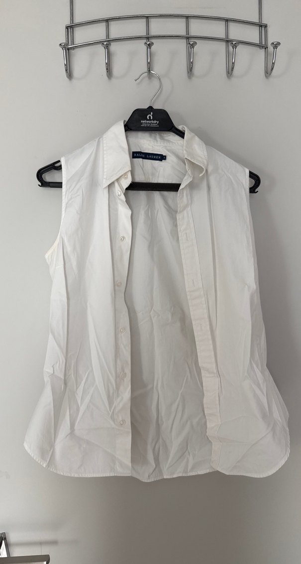 Ralph Lauren Düğmeli Beyaz Kolsuz Keten Gömlek