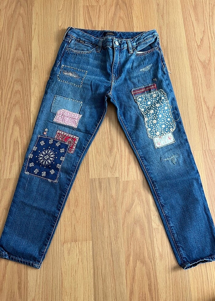 Polo Ralph Lauren yamalı , nakışlı çok şık kot pantolon . 14 taş kız çocuk . Çok iyi durumda sıfır gibi
