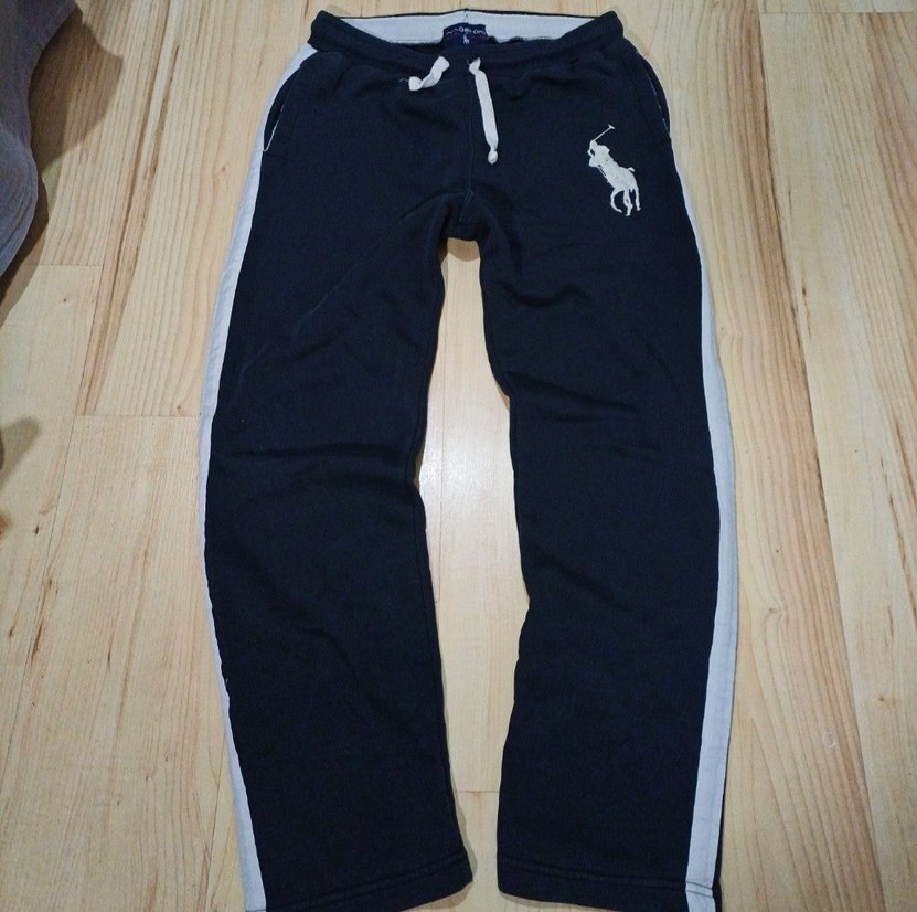 Ralph Lauren markalı, yumuşak kumaştan üretilmiş, fermuarlı cepleri ve yanlarda beyaz şerit detayları olan, rahat kesim mavi sweatpant. ♂️