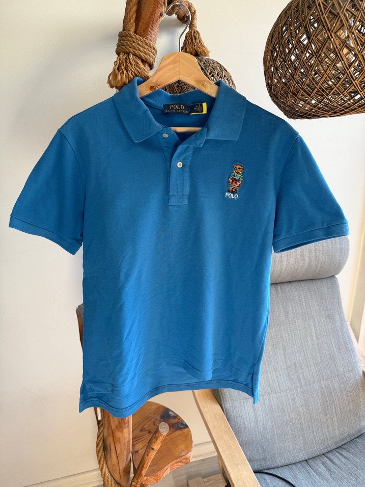 Erkekler için fitted kesim, kısa kollu, polo yakalı tişört. Düğmeli ve baskılı logo detaylı. Parlak mavi renkte, yumuşak ve şık, günlük rahat stil için uygundur. Mağaza değeri 5000 tl . Ürünün sadece boyu kısaltılmıştır . 65 cm diye tahmin ediyorum ..