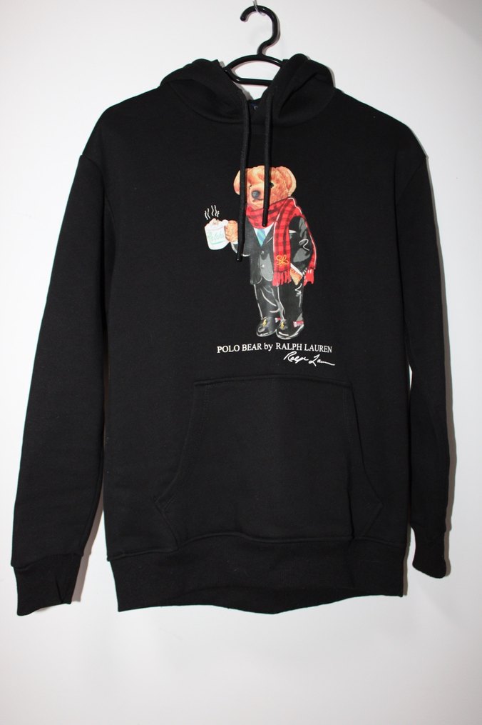 M beden Yumuşak kumaştan, kapüşonlu ve uzun kollu siyah sweatshirt. Polo Bear baskılı, bol kesim ve günlük sokak stili için uygundur.