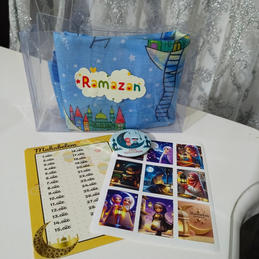 rozetli ramazan setimiz set içeriği çocuk başörtüsü rozet sticker asetat çanta