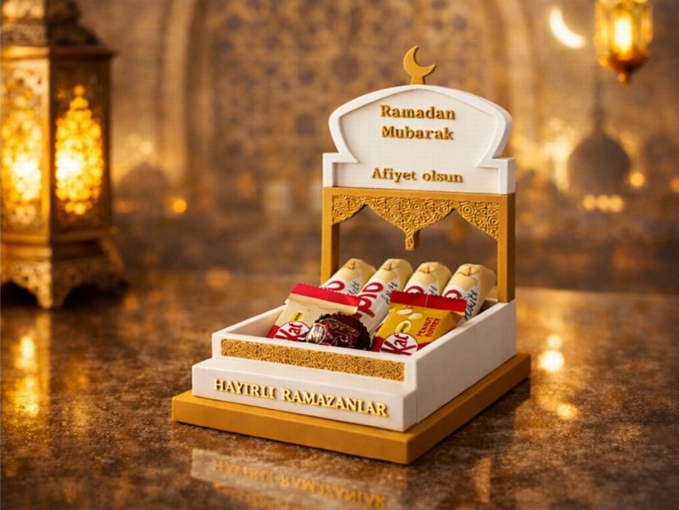 3d yazıcıda sert plastikten üretilmiştir. İstenilen yazı değiştirilebilir. Renk değişikliği yapılabilir. Yaklaşık olarak 13x10 cm boyutlarındadır. İç haznesi 10x9 cm dir.