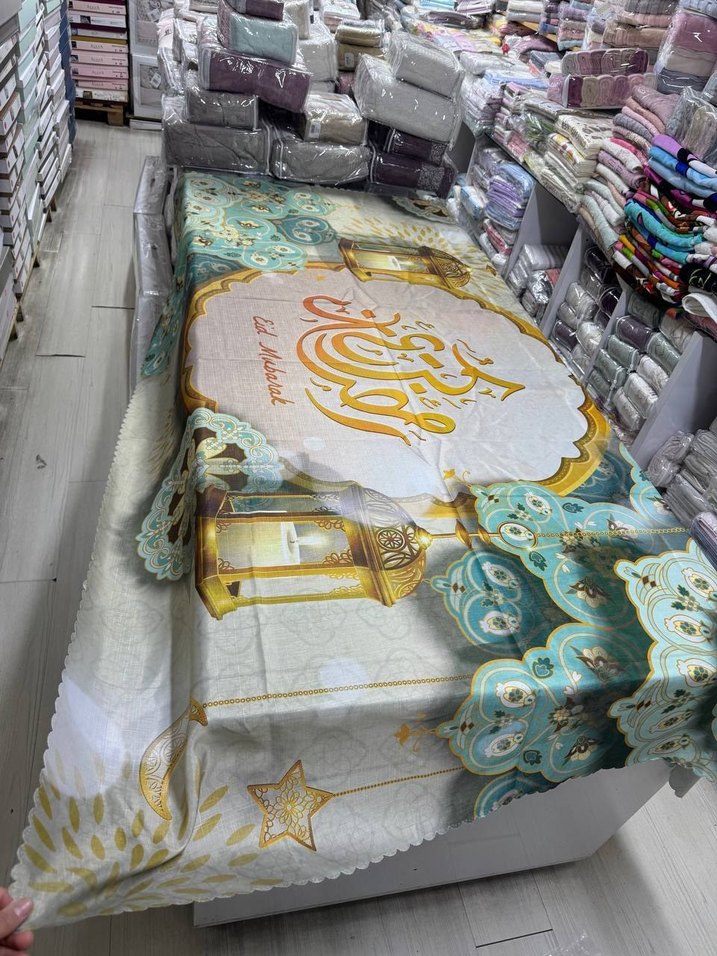 Kumaş çok kaliteli Yıkanınca rengi çıkmas, leke de tutmas. dijital masa örtüsü Ramazan masa örtüsü %100 polyester 160.220 Fiyatı 499tl