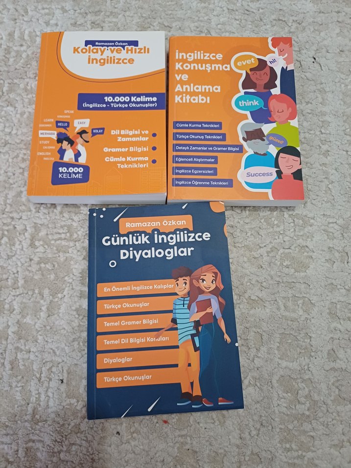Ramazan Özkan'ın İngilizce öğrenme kitapları seti, günlük diyaloglar, konuşma ve anlama, 10.000 kelime, gramer ve okunuş tekniklerini içerir. tekli fiyati yazıyorum