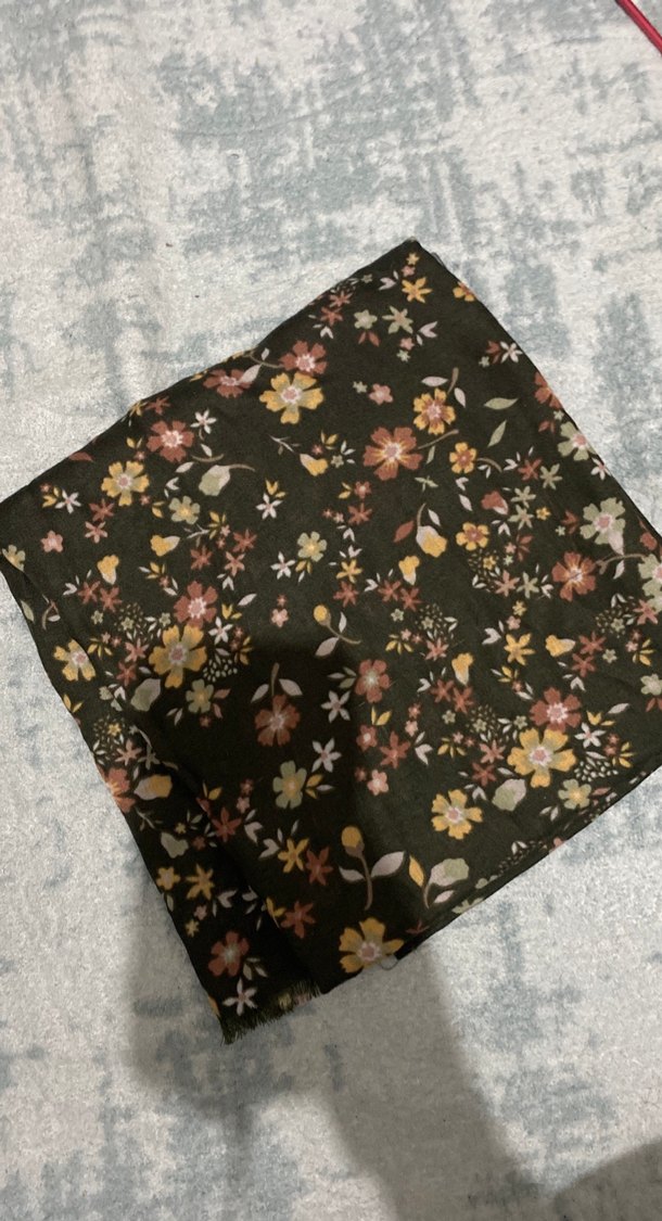 Kadın şal koyu renkli çok renkli çiçek deseni ve fırfır detayları ile yumuşak sentetik kumaştan üretilmiştir, bohem tarz için uygundur.