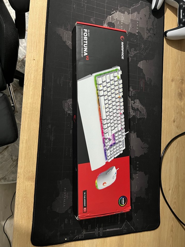 Rampage Fortuna V2 beyaz renkli, RGB aydınlatmalı mekanik klavye ve ergonomik tasarımlı beyaz fare içerir. Canlı renk efektleri sunar. ⌨️