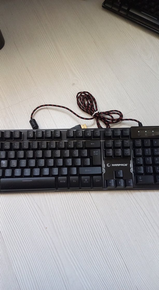Rampage Titan K9 siyah renkli kablolu mekanik klavye, dayanıklı örgülü kablo ve tam tuş takımı ile verimli kullanım sağlar. ⌨️