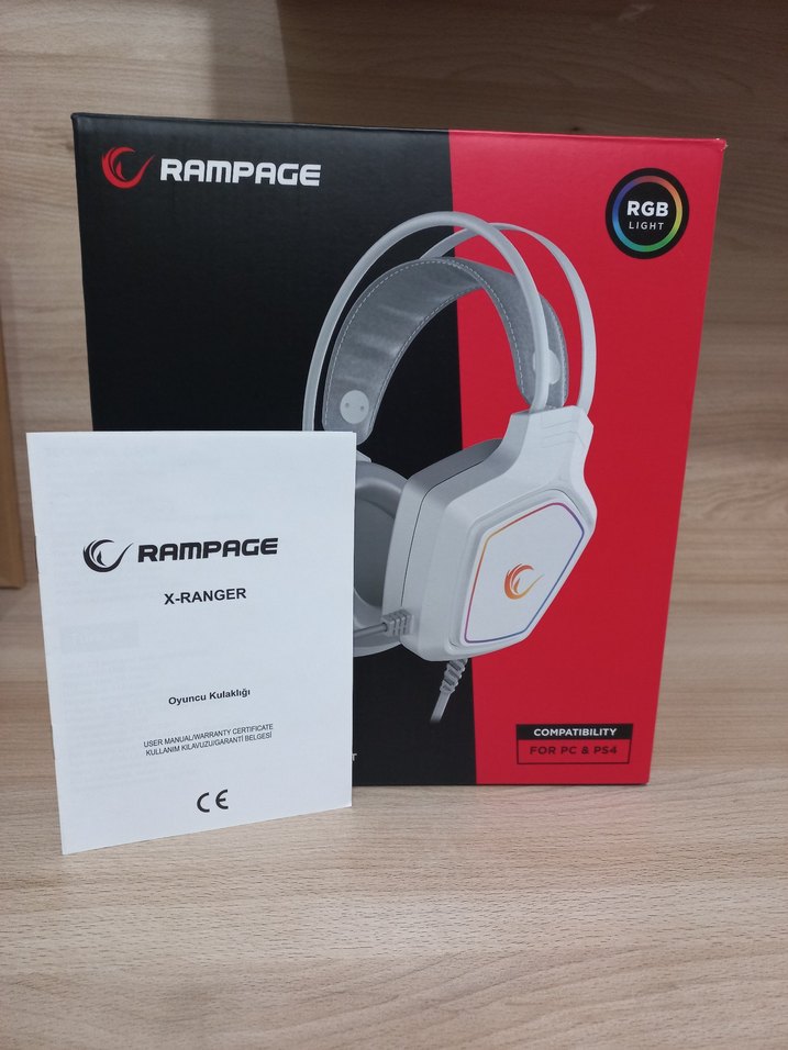 Rampage X-Ranger oyuncu kulaklığı, RGB ışıklandırma ve beyaz renk tasarımı ve 7.1 ses özelliği sayesinde oyuncuların göz bebeğidir. Üründe fatura ve garantisi vardır.