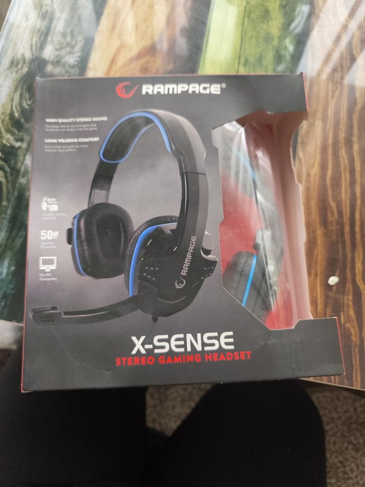 Rampage X-Sense koyu mavi renkli oyuncu kulaklığı, yüksek kaliteli stereo ses ve uzun süreli konfor sağlar.