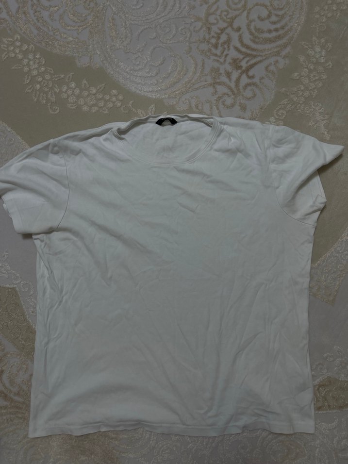 Erkekler için beyaz keten kumaştan, kısa kollu ve yuvarlak yakalı, salaş kesim normal boyda tişört. Günlük kullanım için sade ve rahat bir model.