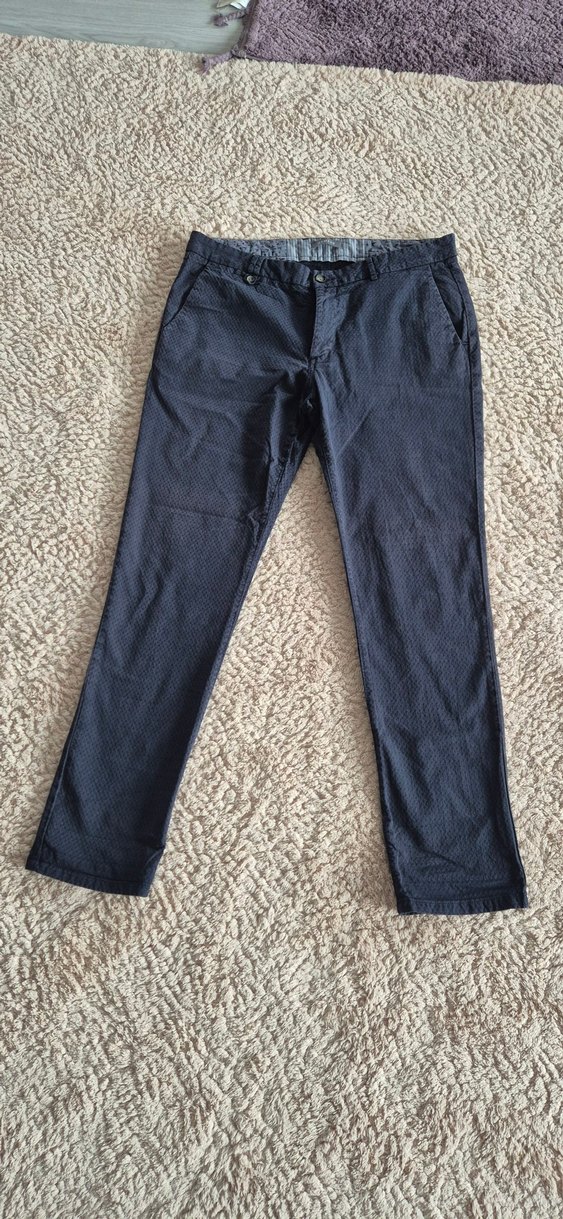 Lacivert renkli, regular fit erkek pantolon. desen içermeyen tasarımıyla günlük ve sokak stiline uygundur. Fotoğrafta tam ölçüleri mevcut.