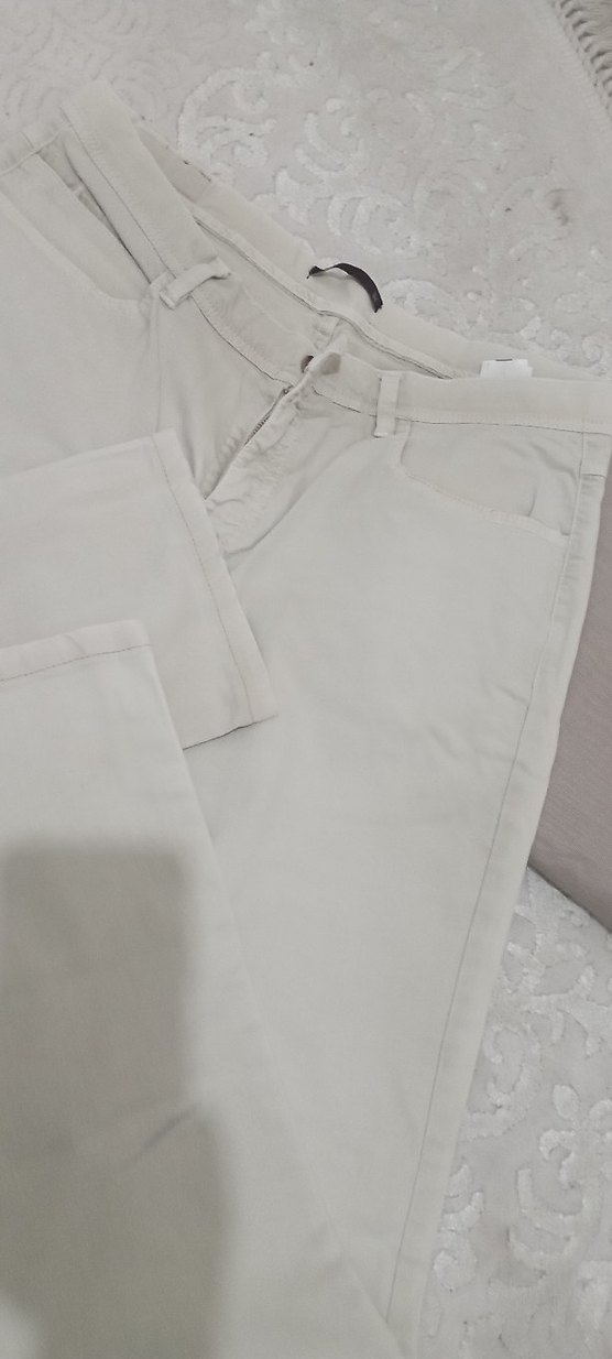 Bej renkli pamuk kumaştan, normal boy midi kesim, düz ve sade tasarımlı erkek pantolon. Günlük kullanım için rahat ve şık bir seçenek.