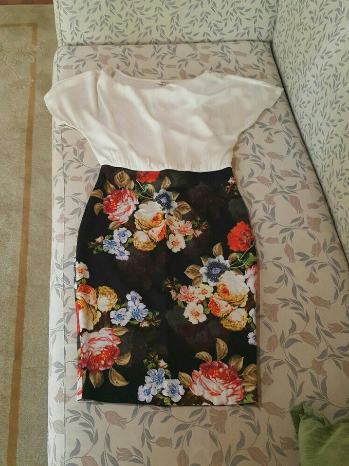 şahane kaliteli üstü ipek gibi kumaşa sahip ve içinde kendinden ip askılı bluzu var etek kısmı astarli mini yirtmacli havuç etek tarzı muhteşem bir elbise çokta kaliteli yeni S ve M uyumlu gece veya ofis için ideal.