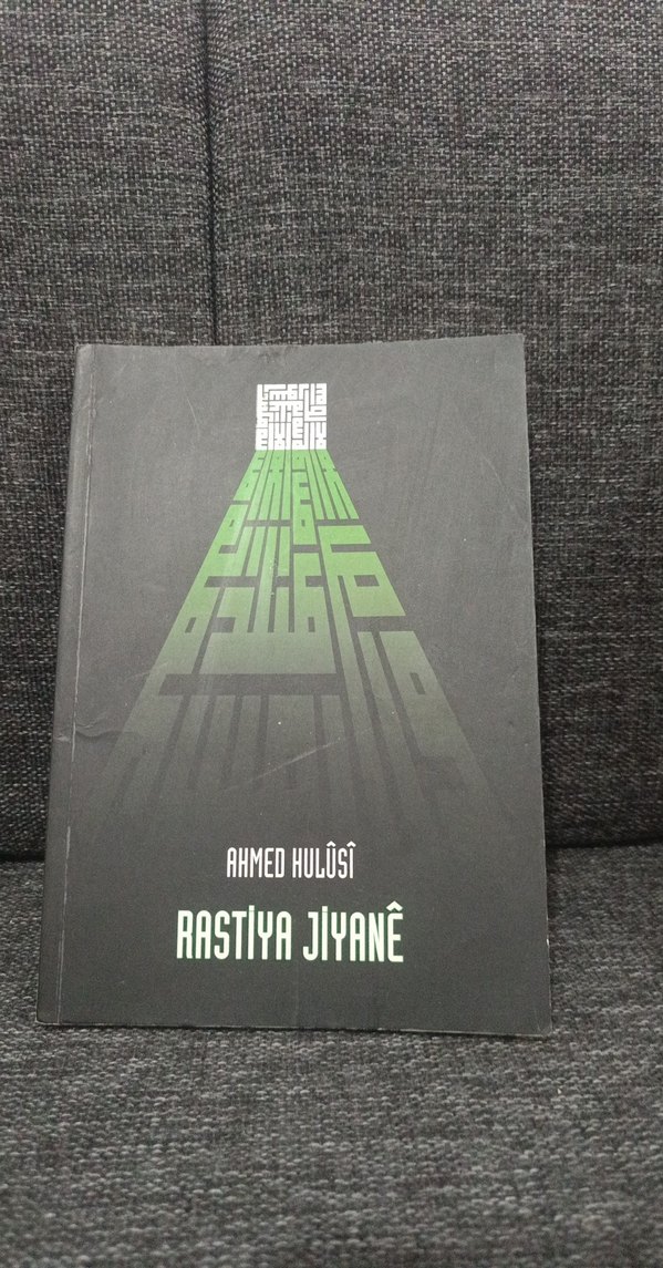 Ahmed Hulûsî'nin Rastiya Jiyanê adlı romanı, siyah zemin üzerine yeşil geometrik desenlerle kaplanmıştır.