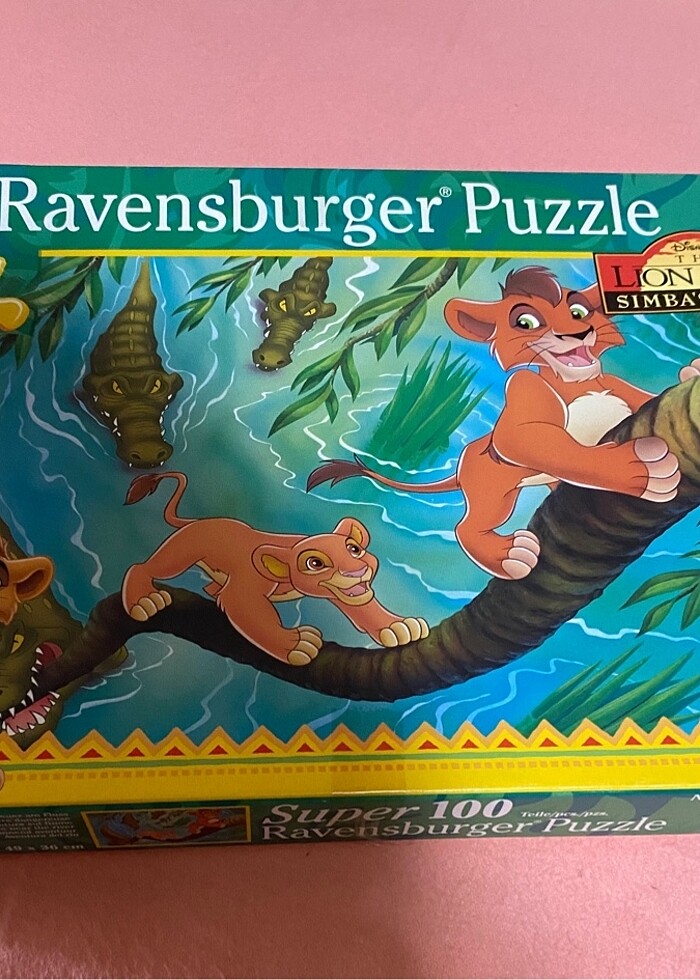 Ravensburger puzzle ..100 parça diye geçiyor ama 104 parça muhteviyatı.. Altı yaş ve üstü için uygun.. klasikleşmiş çizgi filmler kahramanlarından puzzle.. parçaları eksiksizdir.. çocuğunuz bayılacak bu puzzle a..Aslan Kral