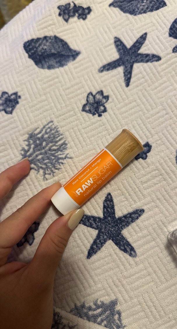 RAW SUGAR doğal dudak balmı, ham hindistancevizi ve mango kokusuyla. Dudakları nemlendirir ve bakım sağlar.