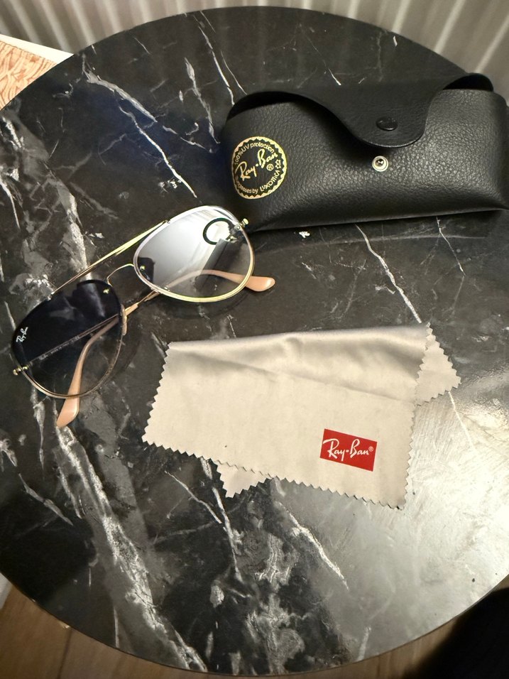 Ray-Ban kadın güneş gözlüğü, gri camlar ve altın renk çerçeveye sahiptir. Fermuarlı siyah kılıf ve temizleme bezi ile birlikte gelir. [bir camında ufak bi çizilme var]