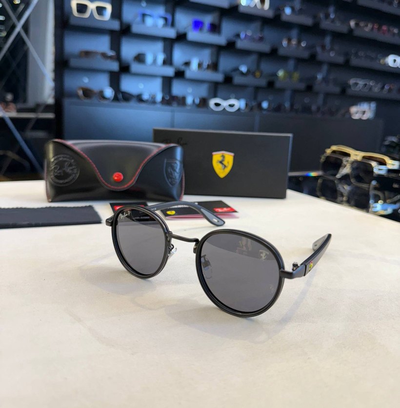 Yuvarlak camlı, şık siyah Ferrari erkek güneş gözlüğü. Ferrari logosu ve koruyucu kılıf ile birlikte gelir. ️