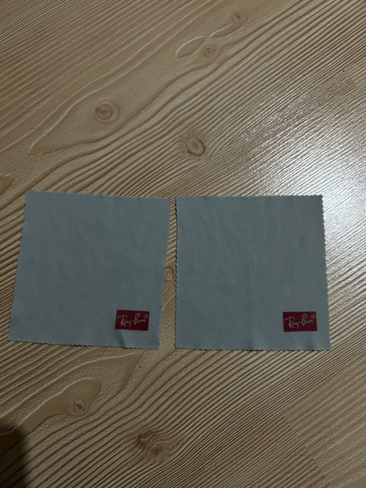 Ray-Ban logosu bulunan, gri renkli, baskılı gözlük bezi