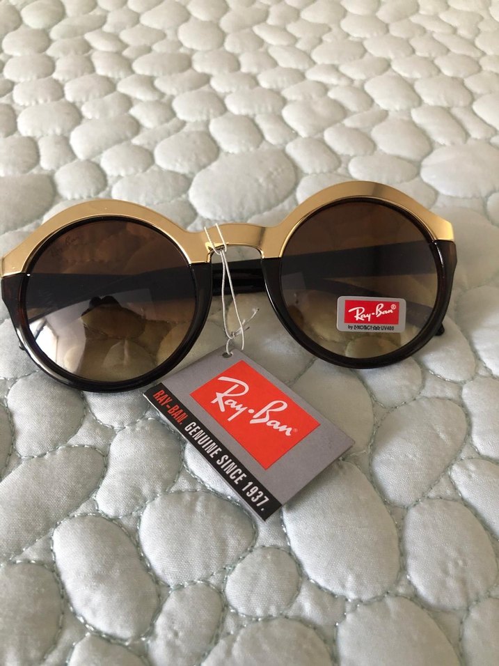 Ray-Ban markalı, kahverengi yuvarlak kadın gözlüğü, tokalı detaylı, klasik ve retro sokak stilini yansıtır.