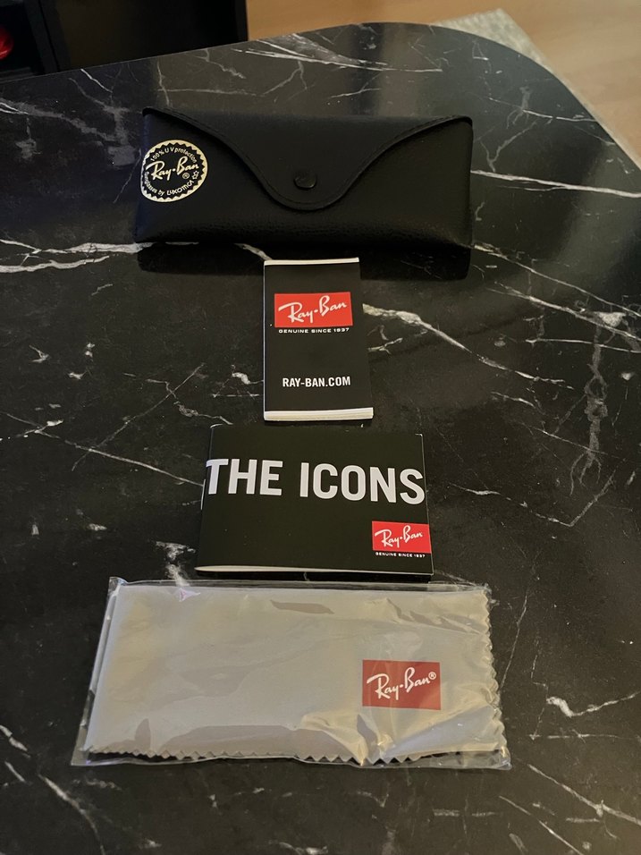 Ray-Ban siyah kadın gözlük, cırt cırtlı kılıf ve temizleme bezi ile birlikte. The Icons kitapçığı ve sağlam koruyucu kılıf içerir. ️